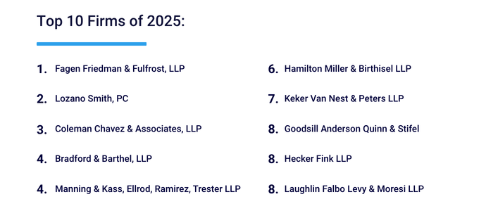 Powered by the SurePoint Legal Insights platform (formerly Leopard Solutions), the LLFI Mid-Sized 200 evaluates U.S. law firms with 50-150 attorneys on growth and stability, delivering a data-driven view of firm performance and overall health.